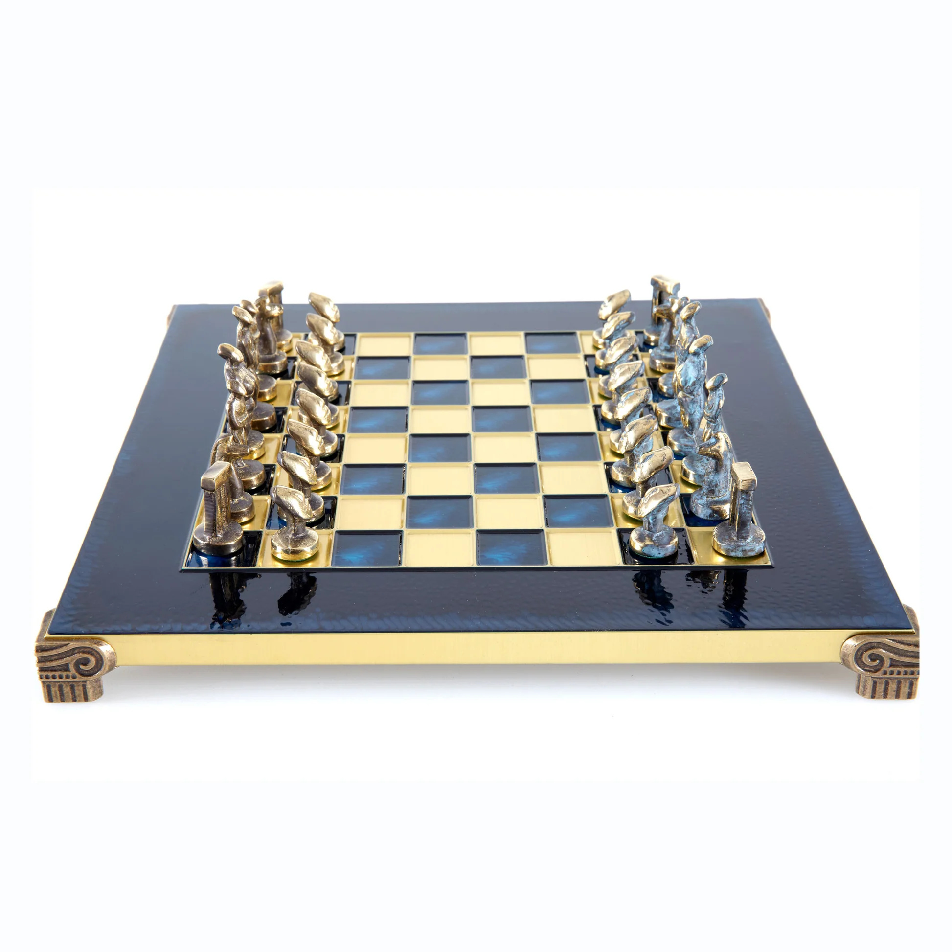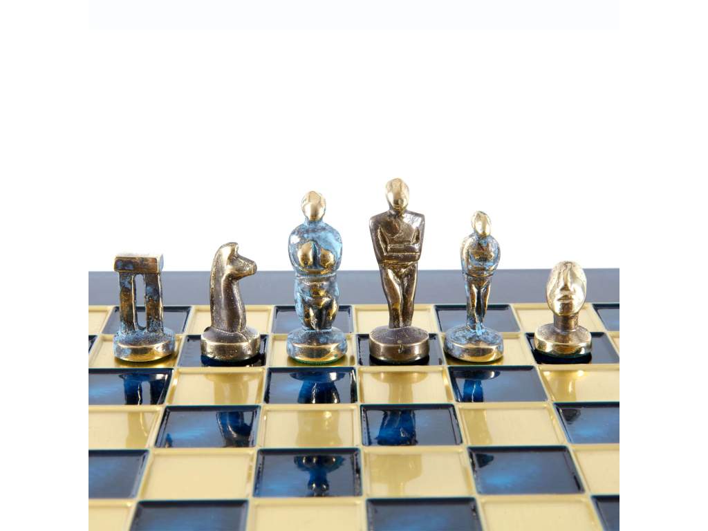 - Ručne vyrábané šachové figúrky z masívnej mosadze v modrom a hnedom vyhotovení