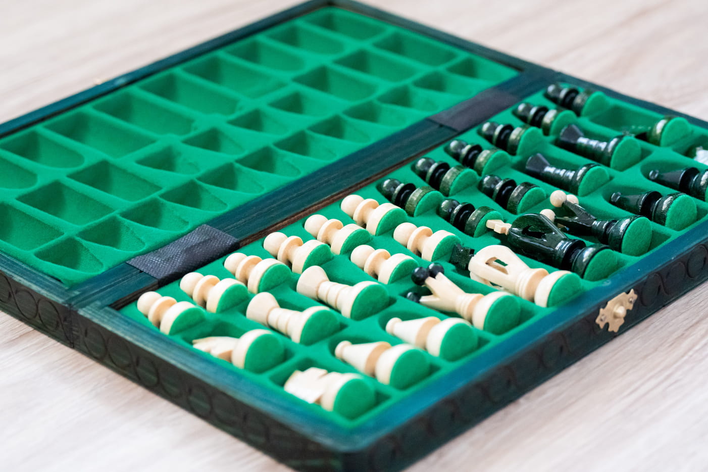 | Typ šachovnice: | skladacia, s úložným priestorom na figúrky |