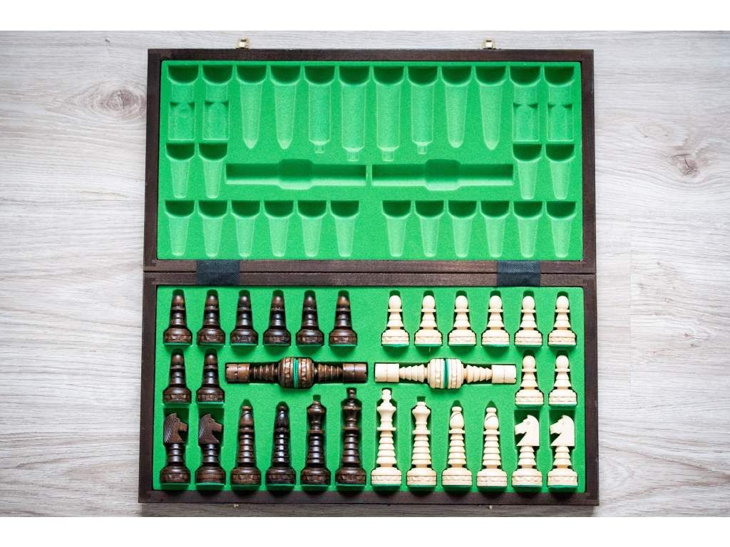 | Typ šachov: | Drevené skladacie šachy |