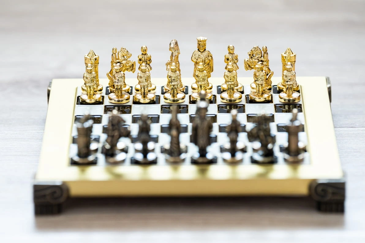 Každá figúrka je starostlivo vyrobená tak, aby odrážala zložité vzory Byzantskej ríše, vďaka čomu je každá vaša hra presiaknutá historickou eleganciou. Kompaktné rozmery tejto šachovej súpravy z nej robia ideálny doplnok na cesty alebo dekoratívny prvok vo vašej domácnosti.