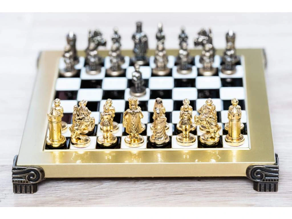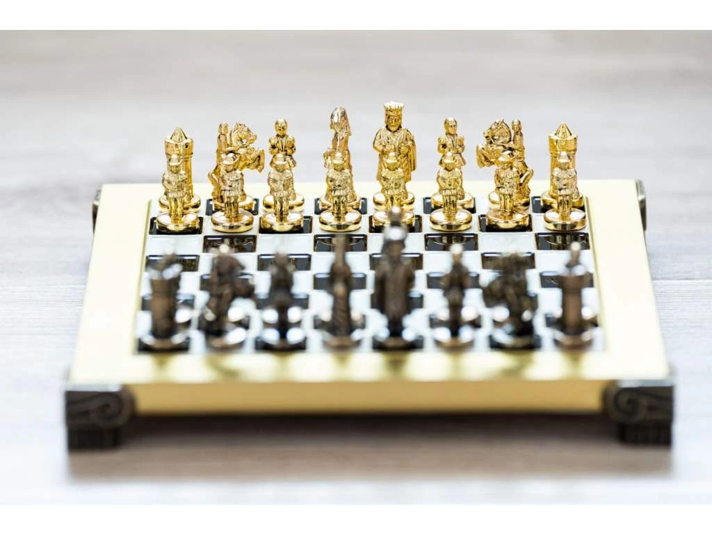 Každá figúrka je starostlivo vyrobená tak, aby odrážala zložité vzory Byzantskej ríše, vďaka čomu je každá vaša hra presiaknutá historickou eleganciou. Kompaktné rozmery tejto šachovej súpravy z nej robia ideálny doplnok na cesty alebo dekoratívny prvok vo vašej domácnosti.