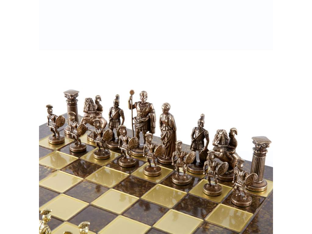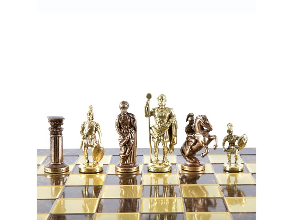 Ručne vyrobené šachové figúrky: Každá figúrka je starostlivo navrhnutá tak, aby odrážala bohaté dedičstvo a umenie grécko-rímskeho obdobia.