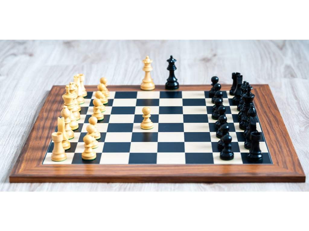 Ručne vyrobená šachovnica. Tento model kombinuje políčka s elegantne zafarbenou čiernou farbou tulipánového dreva a slonovinovo bielou farbou platanového dreva, ktoré vyniká výrazným vetovaným rámom zo santosového palisandra.