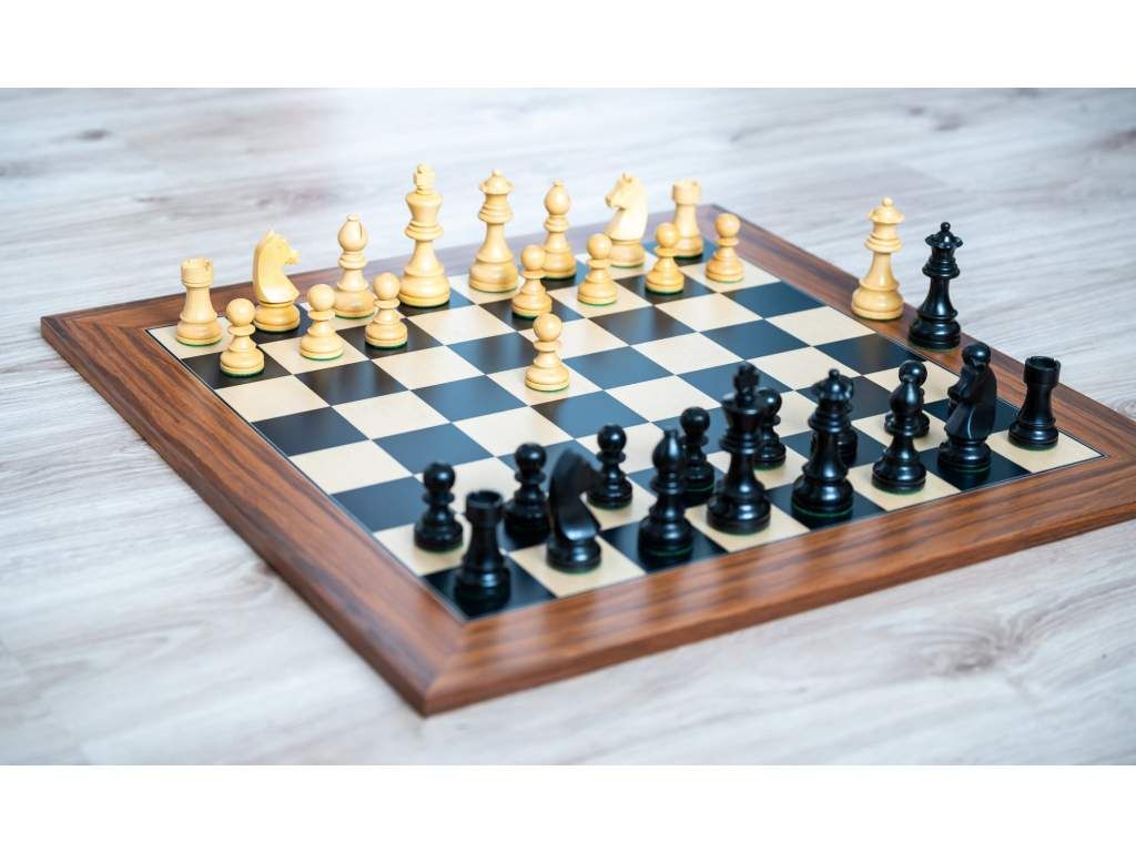 Šachovnica vyrobená z palisandrového a platanového dreva. Po bokoch sa nachádza ozdobný lem.