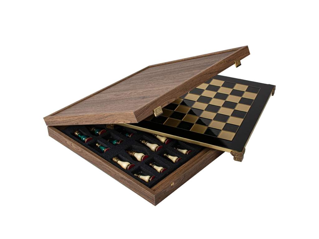 - Bronzová šachovnica s rozmermi 44 x 44 cm, ideálna pre stredne veľké priestory