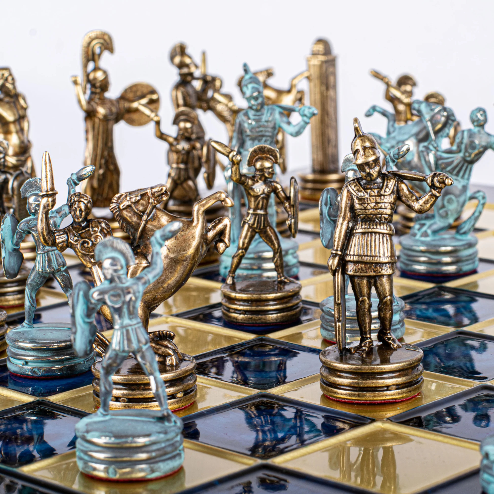 Objavte našu ponuku exkluzívnych stolových hier a obohatte svoju zbierku o túto luxusnú a kultúrne bohatú šachovú súpravu s motívmi gréckej mytológie. Je to perfektný doplnok pre každého, kto si cení históriu, umenie a vynikajúce remeselné spracovanie vo svojej herni.