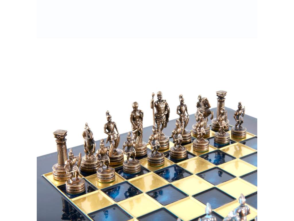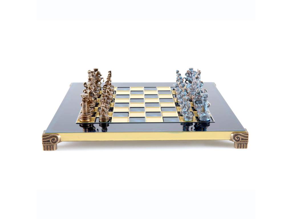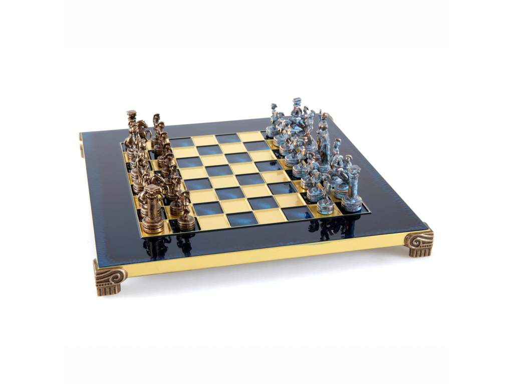 - Ručne vyrábané šachové figúrky z masívnej mosadze v modrom a hnedom vyhotovení