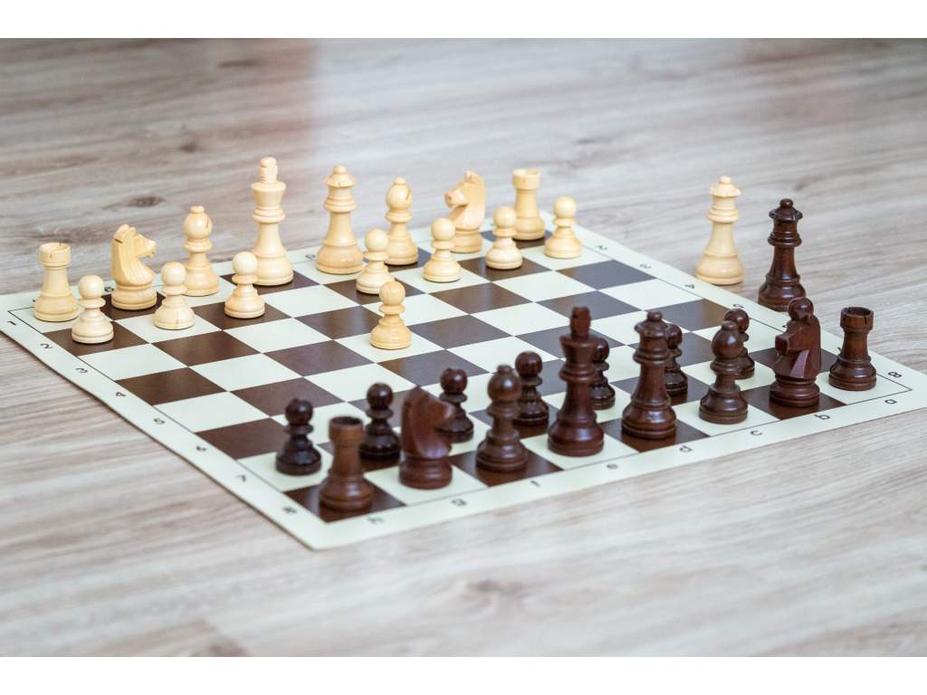 Portable Class: Wooden Staunton Chess with Vinyl Chessboard