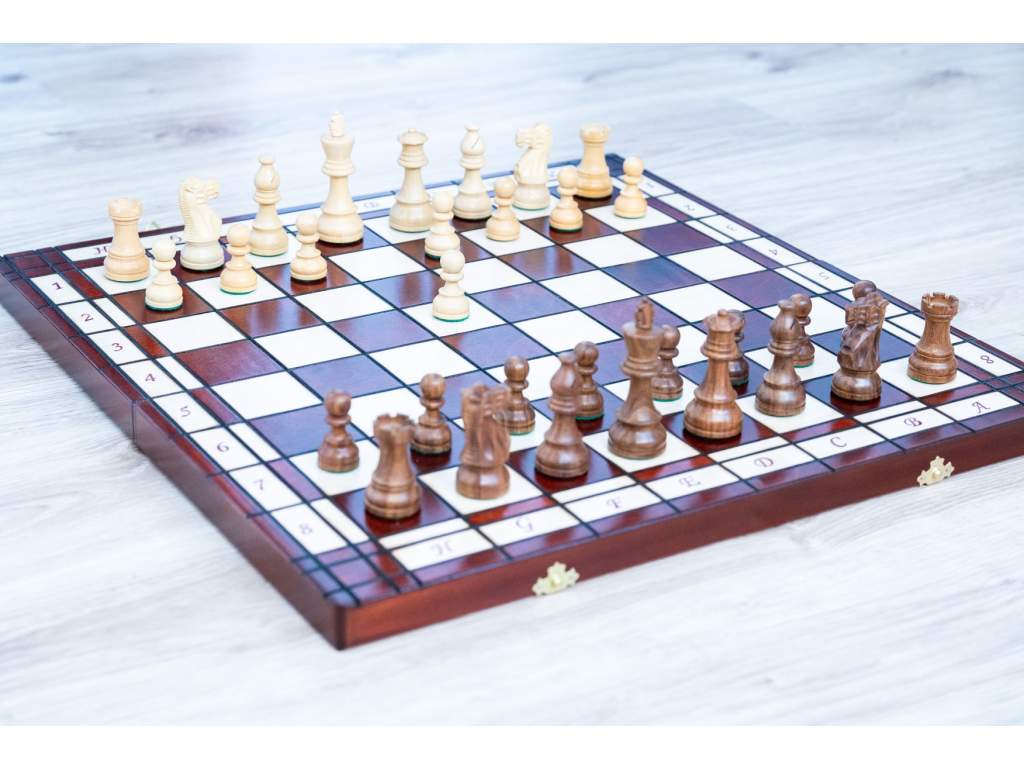Šachovnica je vyrobená z kvalitného javorového dreva, ktoré dodáva celej súprave svetlý a elegantný vzhľad. Jej povrch je hladký a príjemný na dotyk, čo zaručuje komfort pri hre. Po obvode šachovnice je vyznačená notácia, ktorá uľahčuje sledovanie hry a analýzu ťahov.