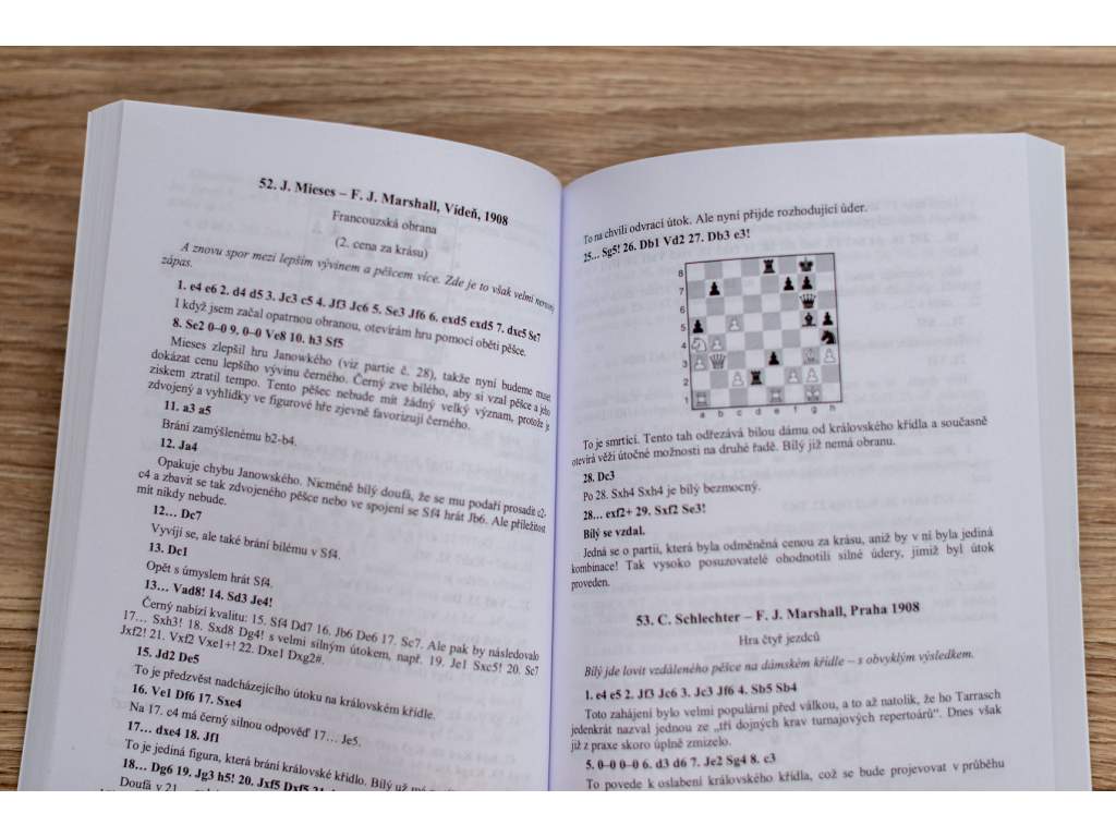 Frank J. Marshall, 1877-1944, byl ve své době jeden z nejlepších světových hráčů, kandidát mistrostvství světa. Šachová autobiografie a 140 nejlepších Marshallových partií s jeho vlastními podrobnými komentáři. Přehled výsledků, indexy hráčů a zahájení. Překlad z anglického originálu My Fifty Years of Chess, poprvé vydaného v roce 1942.