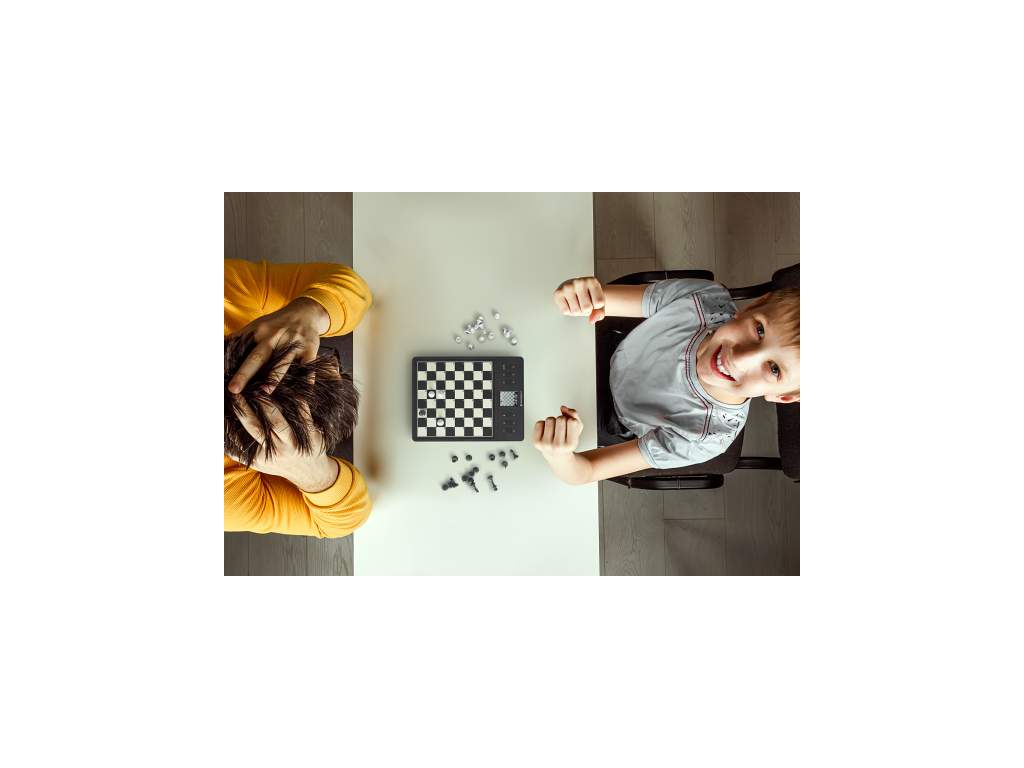 Je ideálny pre deti a dospelých, ktorí sa chcú naučiť šach alebo zlepšiť svoju hru. Kedykoľvek môžete hrať proti počítaču, ktorý sa automaticky prispôsobí vašej hre bez toho, aby ste museli vykonávať zložité nastavenia. Ovládanie je intuitívne a jednoduché – stlačením tlačidla môžete okamžite hrať s bielymi, čiernymi alebo s priateľom.