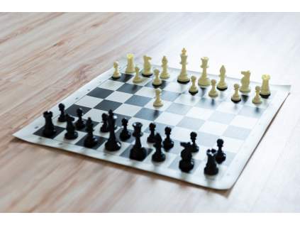 Šachová súprava Dynasty s flexibilnou skladacou šachovnicou a ľahkými plastovými figúrkami je...