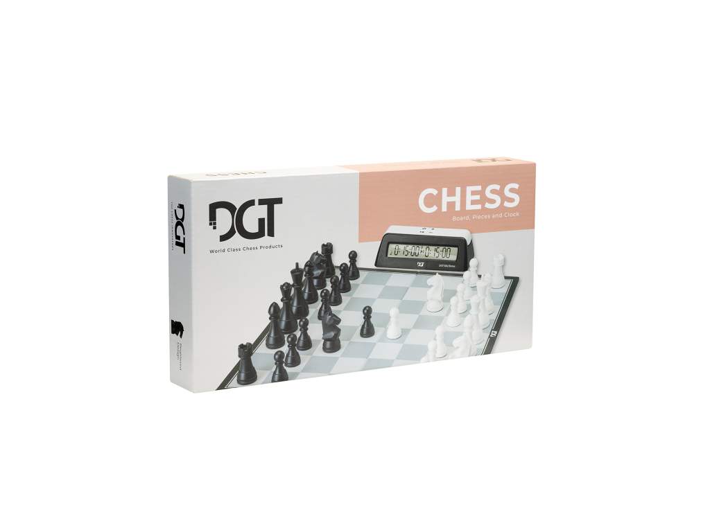 Pozdvihnite svoje tvorivé myslenie s touto premyslene navrhnutou šachovou súpravou. Pozýva dvoch hráčov, aby sa spojili, taktizovali a užili si podnetnú partiu šachu. Súpravu odlišuje pridaný bonusový šachový časovač DGT1002, ktorý zvyšuje zážitok z hry. Figúrky majú registrovaný dizajn Modern Staunton od spoločnosti DGT a menšiu veľkosť, vďaka čomu sú ideálne pre deti.