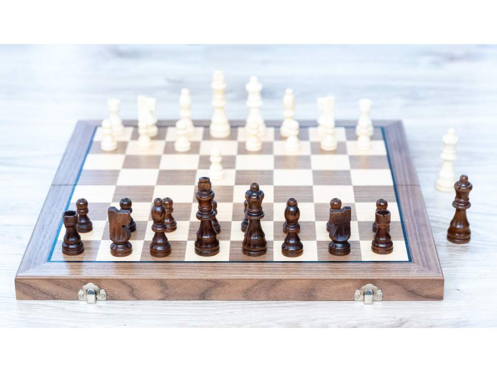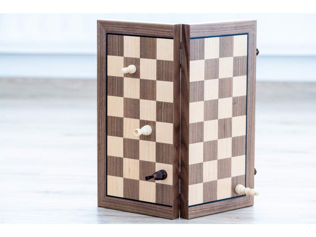 Skladacia konštrukcia umožňuje jednoduché uloženie figúrok do vnútra šachovnice, čím sa zabezpečí ich bezpečné prenášanie a ochrana pred poškodením.