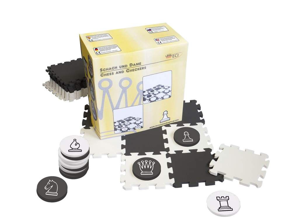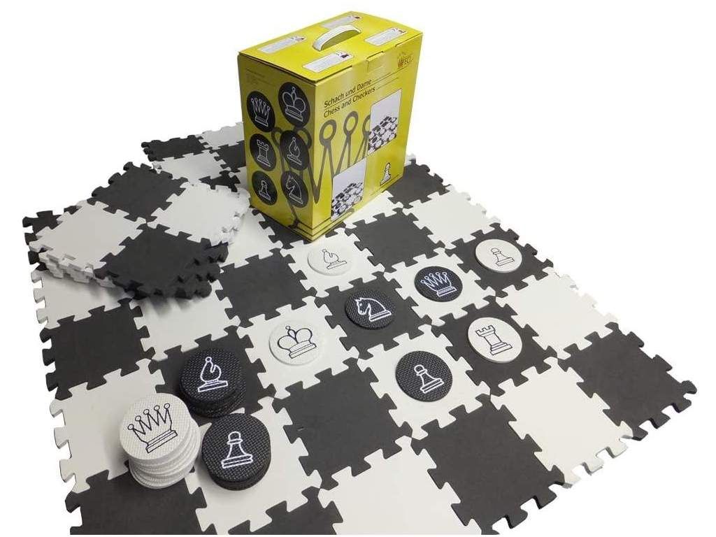 Šachy a dáma vyrobená z kvalitnej, proti roztrhnutiu a proti šmyku vyvinutej peny. Tento vode odolný materiál s mimoriadne veľkými obrázkami šachových figúr je ideálna pre malých a veľkých hráčov šachu všetkých vekových skupín.